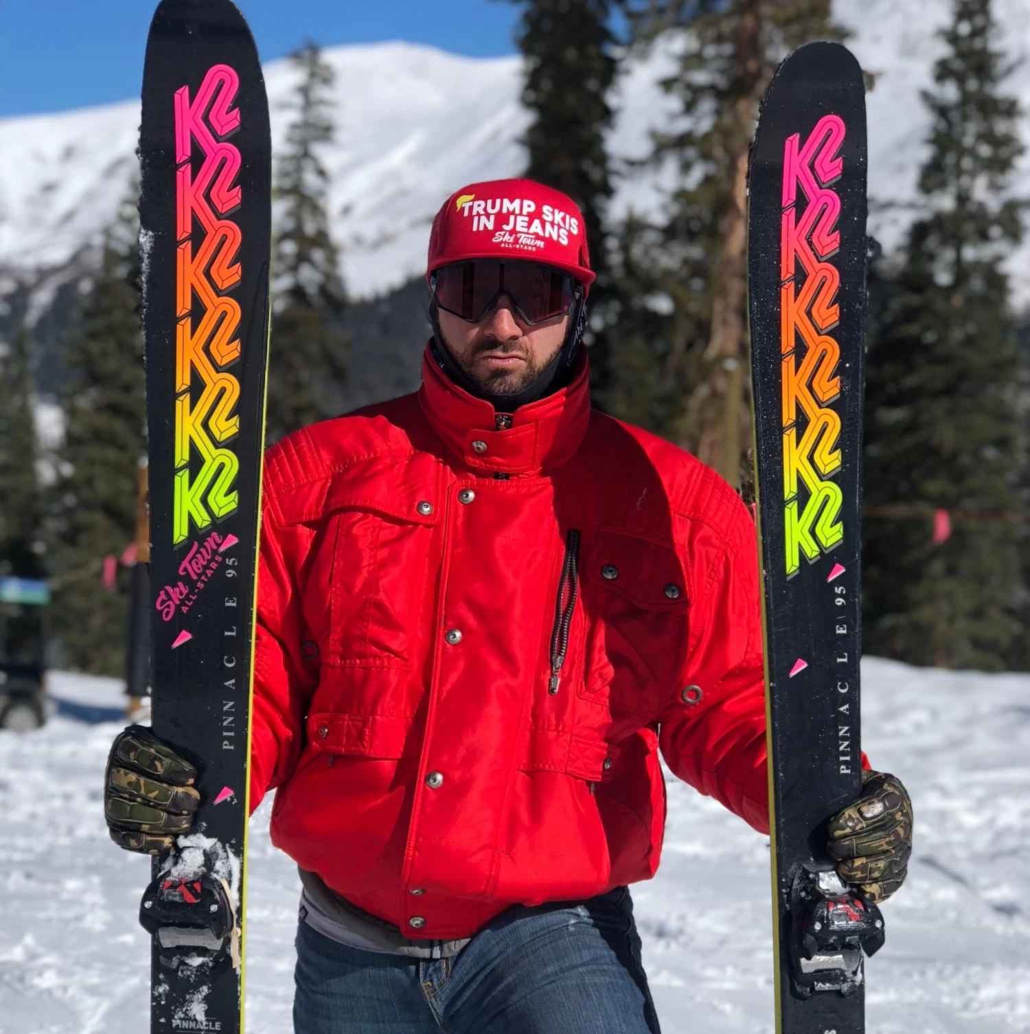 | Color | RED TRUMP SKIS IN JEANS, RED WHITE BLUE TRUMP SKIS IN JEANS |